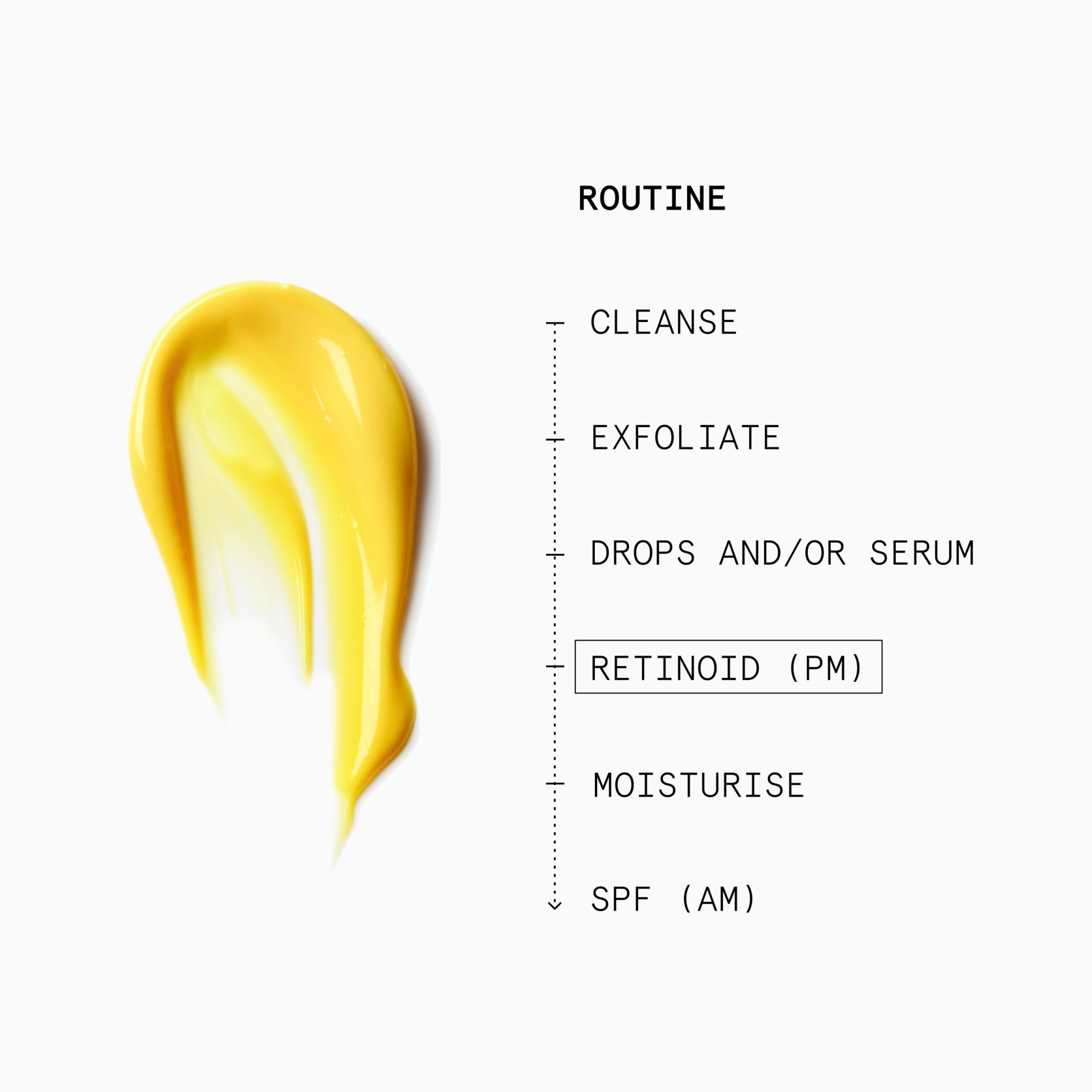 In the evening, apply 1-2 pumps onto a well-cleansed face and neck. Start off twice a week and build up frequency slowly (you can cycle with your usual Retinol on the other evenings). Use under your favourite moisturiser, avoiding the delicate skin around and over your eyes.