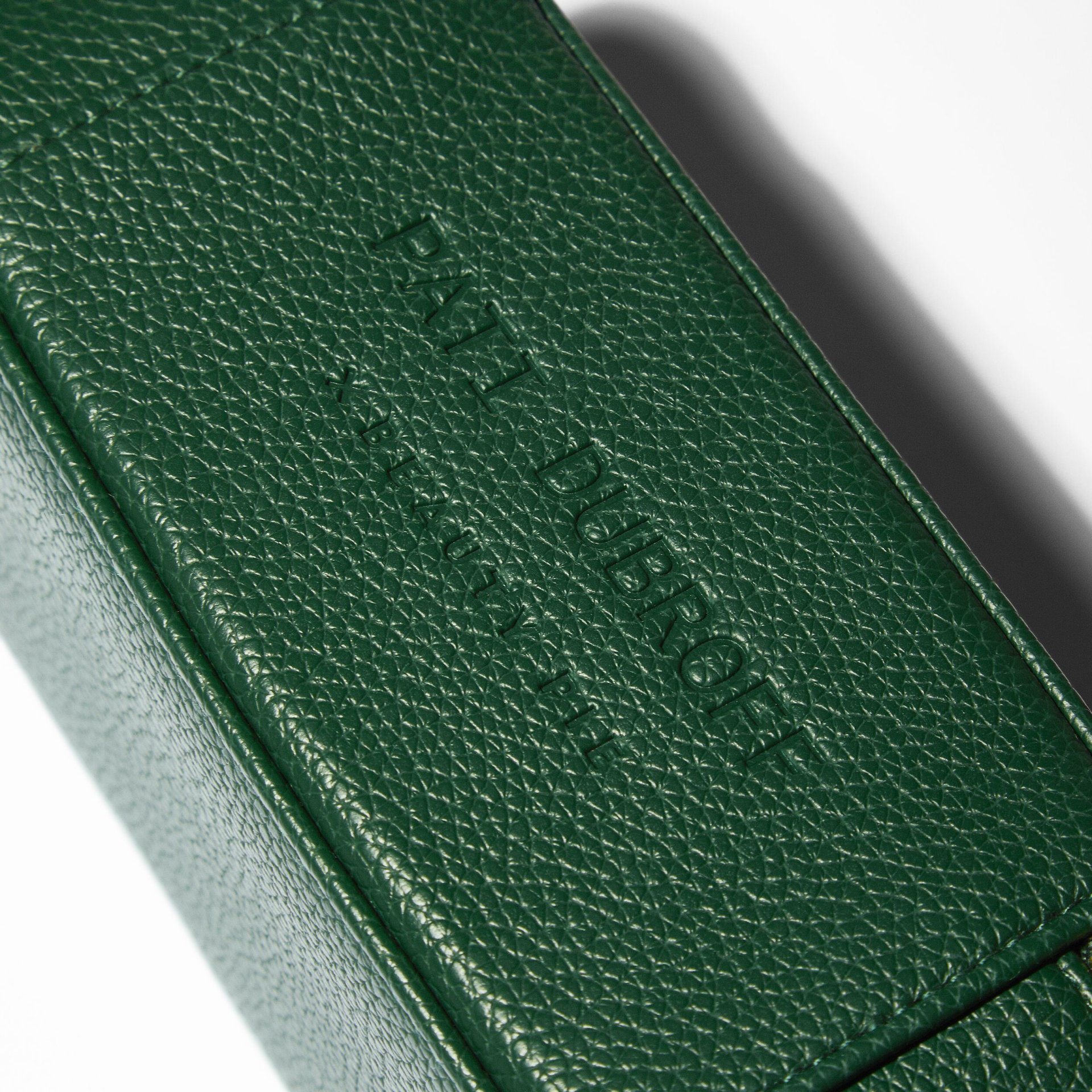 + Made from dark green vegan PU leather.