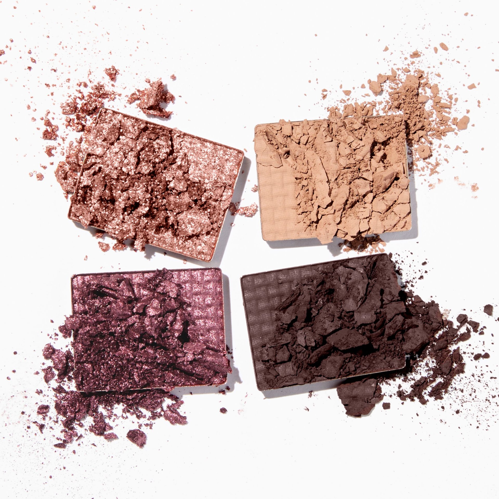 Shade 1: Rose Gold - Rose Gold Shimmer Shade 2: Sepia - Light Brown/Beige Matte Shade 3: Metallic Plum - Mid Plum Shimmer Shade 4: Muddy Plum - Deep Plum/Brown