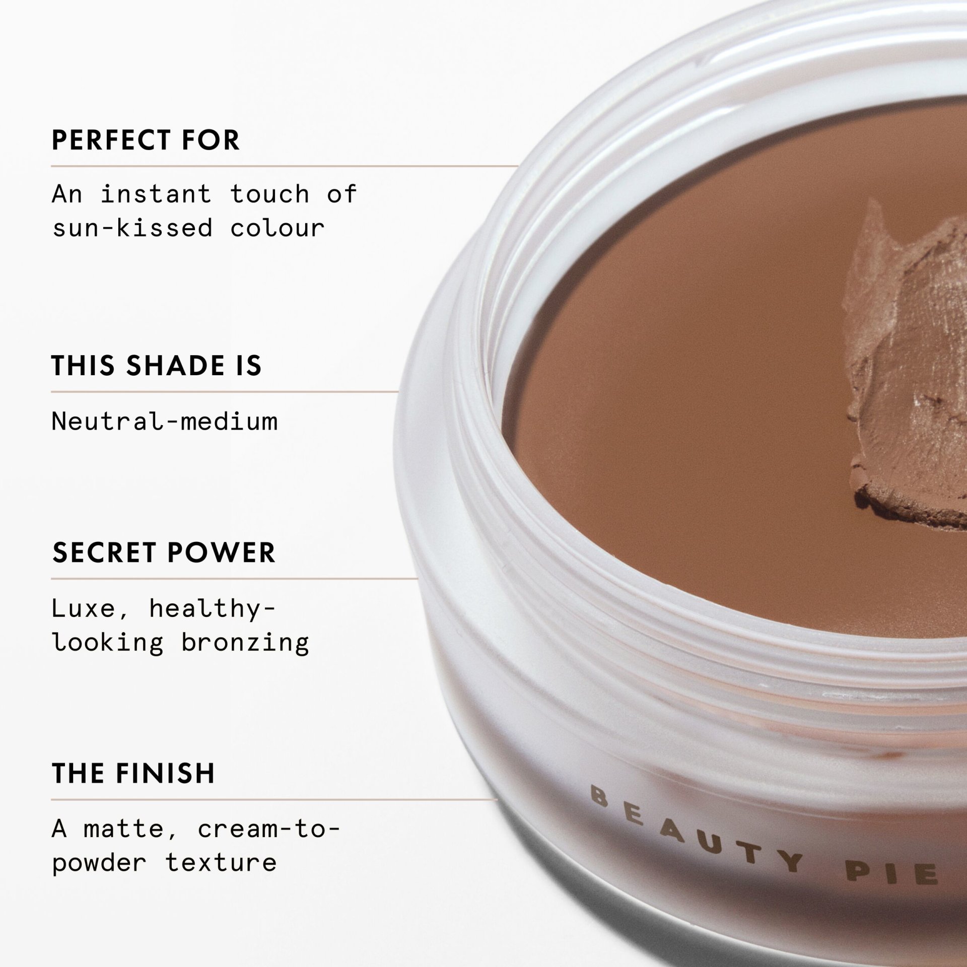 + An ultra-light, matte cream bronzer for a perfectly natural, second-skin glow.