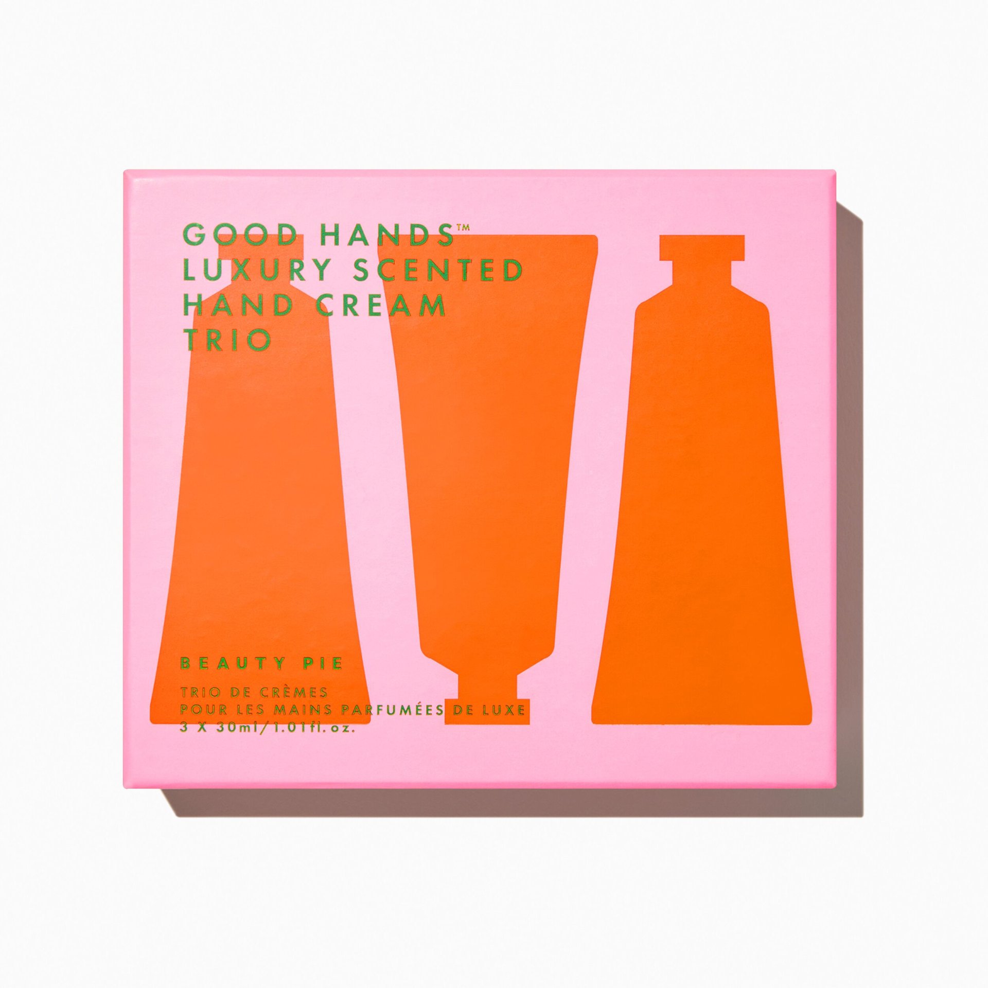 + 3 fragrance-infused luxe hand creams. + Scents of Orris Florentina, Orange Absolute & Pampelonne. + Nourishing Shea Butter-infused formula. + With Sweet Almond Oil & Vitamin E.
